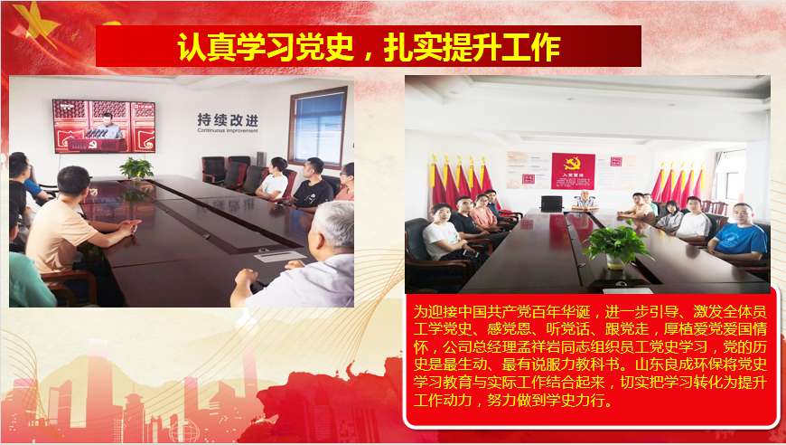 为迎接中国共产党百年华诞,进一步引导、激发全体员工学党史、感党恩、听党话、跟党走,厚植爱党爱国情怀,公司总经理孟祥岩同志组织员工党史学习,党的历史是最生动、最有说服力教科书。山东yl23411永利集团环保将党史学习教育与实际工作结合起来,切实把学习转化为提升工作动力,努力做到学史力行。