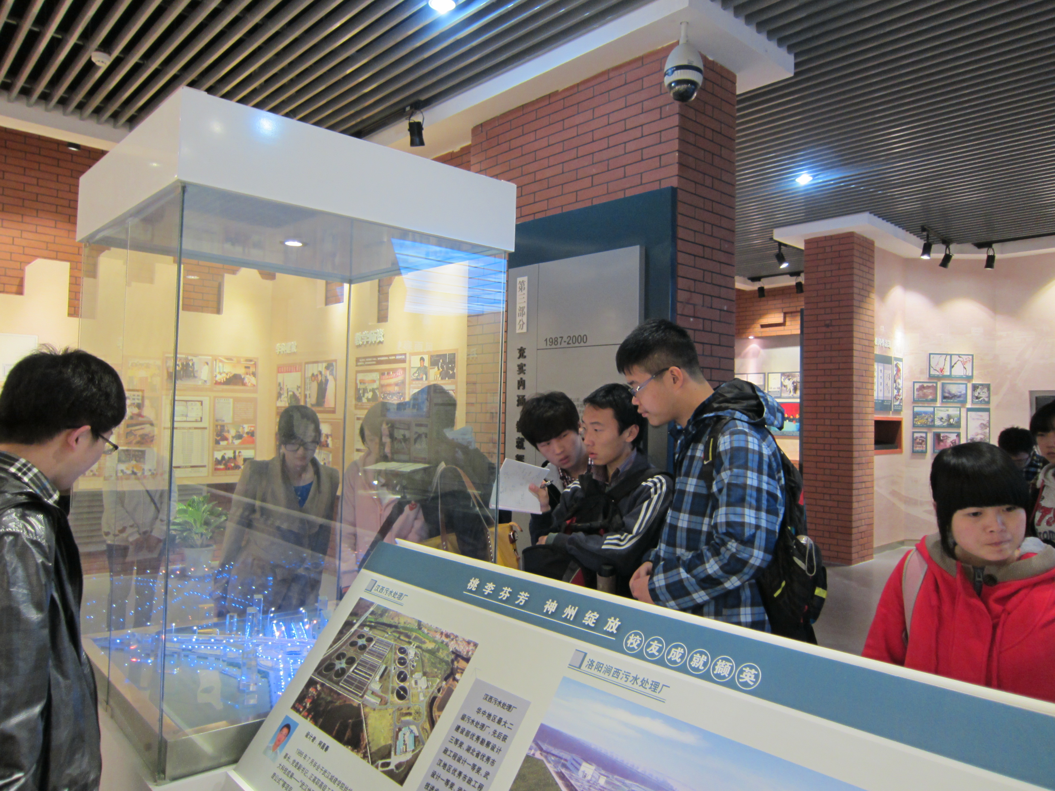 紧接着,伴着墙上“风雨彩虹路”这五个醒目的大字,大家便跨入到武汉市城市建设学院的陈列馆。在馆内,陈列了很多杰出的校友设计出来的建筑模型或者建筑画面,这些建筑令人叹为观止,这些优秀的设计给城市的经济文化发展都添上了浓墨重彩的一笔!