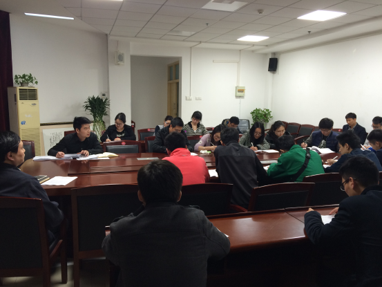 随后,与会人员结合下发的2016两会政府工作报告全文观看了两段相关短视频,第一段视频是关于政府2015年在基础设施建设、扶贫以及简政放权等方面所取得的瞩目成绩,第二段视频解读了今年两会的十个关键词,分别是:经济增长预期6.5%—7%、供给侧结构性改革、新经济、扶贫攻坚、政府自身建设、反腐倡廉、重拳治污、新型城镇化、民生改善、对外开放。观看完视频后是自由讨论环节,在主持人的邀请下,硕士1504班党支书陈雨同志分享了他们支部组织生活会学习“两会”精神的心得,他认为学习会议的形式及主题讨论应该更多的贴合同学们的生活,使他们体会到“两会”与我们息息相关;硕士1507班党支书罗莉莉同志、研究生会主席吕振亚同志均对环境污染问题发表了自己的看法,他们认为我国环境污染严重,政府需要继续下大力气治理,党总支副书记冯晓东老师与与会同志分享了自己关于环境问题的看法,他认为我国步入工业化时间比发达国家晚,近年来经济快速发展,像发达国家所经历过的环境污染时期一样难以避免的会带来环境污染程度的加深,另外,国民的环保意识还需提高,存在一些不法分子违规排放的现象,但是近年来政府出台了各项重拳治污的措施,排放标准越来越高,监管体系越来越完善,环境问题也在一步步改善。