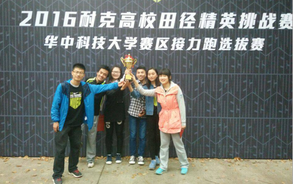 4月17日,2016年耐克高校田径精英挑战赛,华中科技大学赛区接力跑,在学校鸣锣开抢。