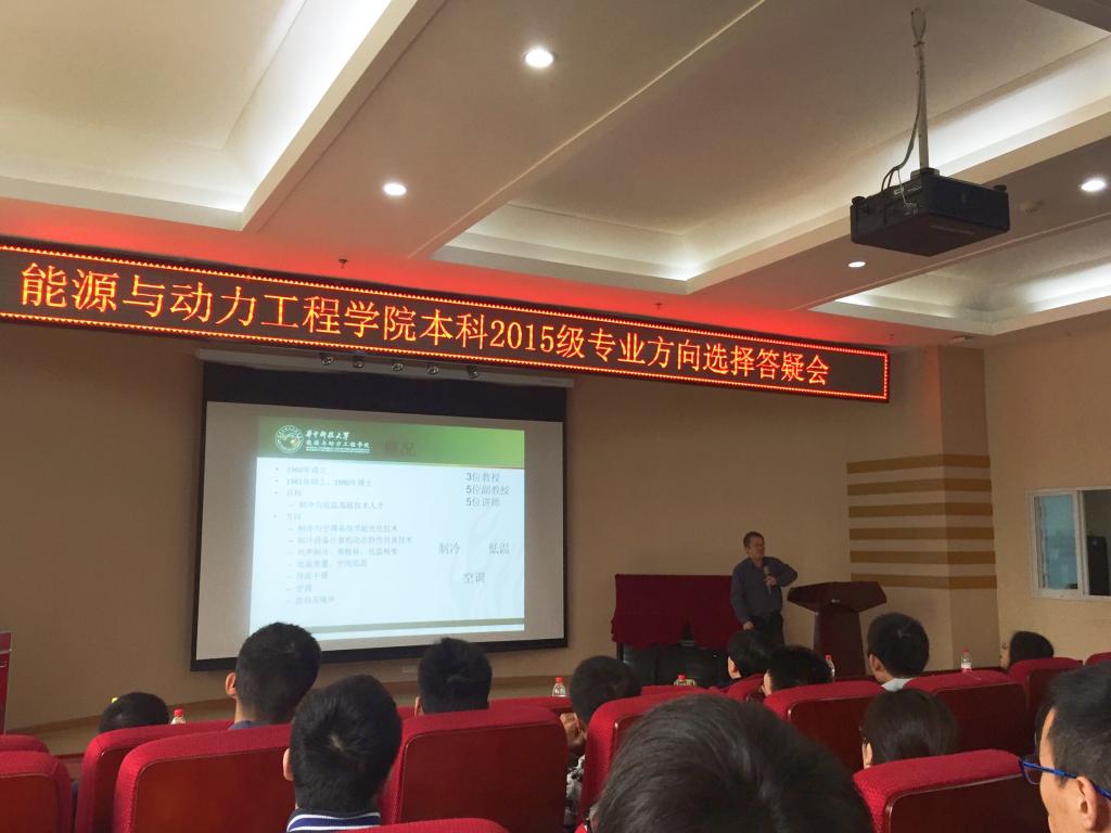 谢军龙作了关于制冷及低温的介绍,他向同学们介绍了该专业建系以来的历史,师资力量、本专业的研究方向和对学生的培养目标,并讲解了制冷设备与空调系统CFD分析技术、低温系统及低温传热这两大研究领域的研究内容。告诫同学们一定要根据自身兴趣选择专业方向。