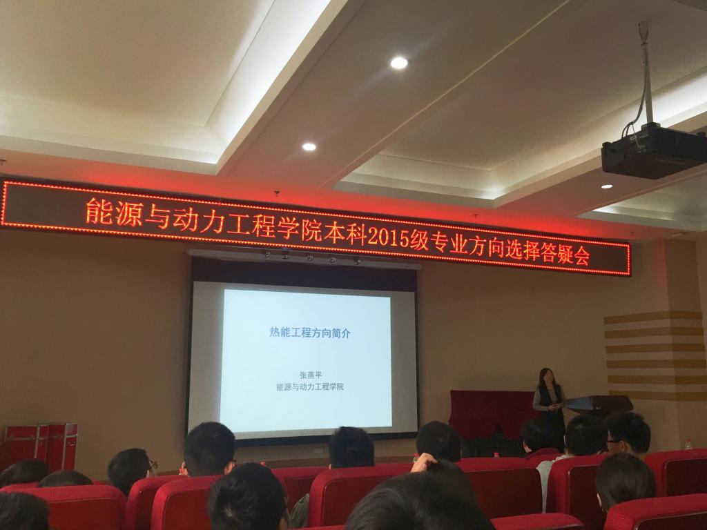 张燕平作了关于热能工程专业的介绍,首先给同学们介绍了学院的学科架构,让同学们对yl23411永利集团一级、二级学科及学术机构有了清楚的了解。随后从热能工程教师现状、课程设置、研究方向、就业情况这四方面分别作了详细的介绍,使同学们更加深入地认识热能与动力工程。