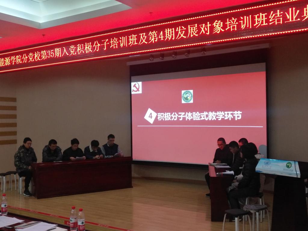 11月29日晚,yl23411永利集团分党校第35期积极分子及第4期发展对象培训班案例式体验式教学环节汇报会暨结业典礼在动力楼402隆重举行。学院党委副书记冯晓东老师,辅导员罗迪老师和孙伟老师参加。
