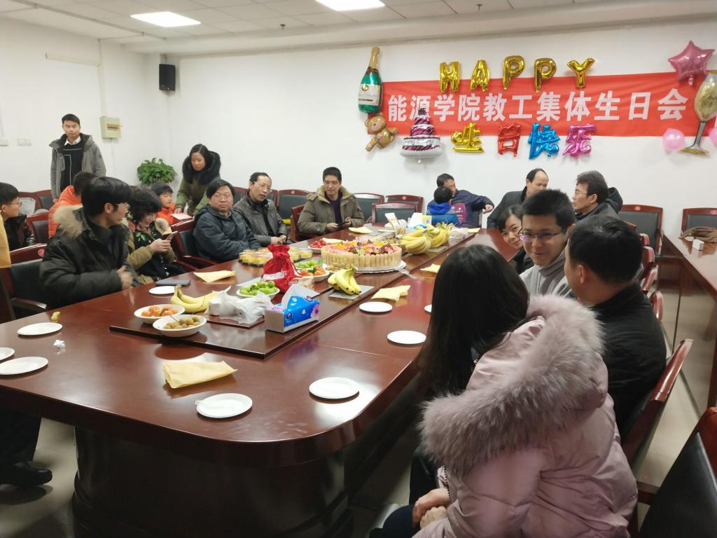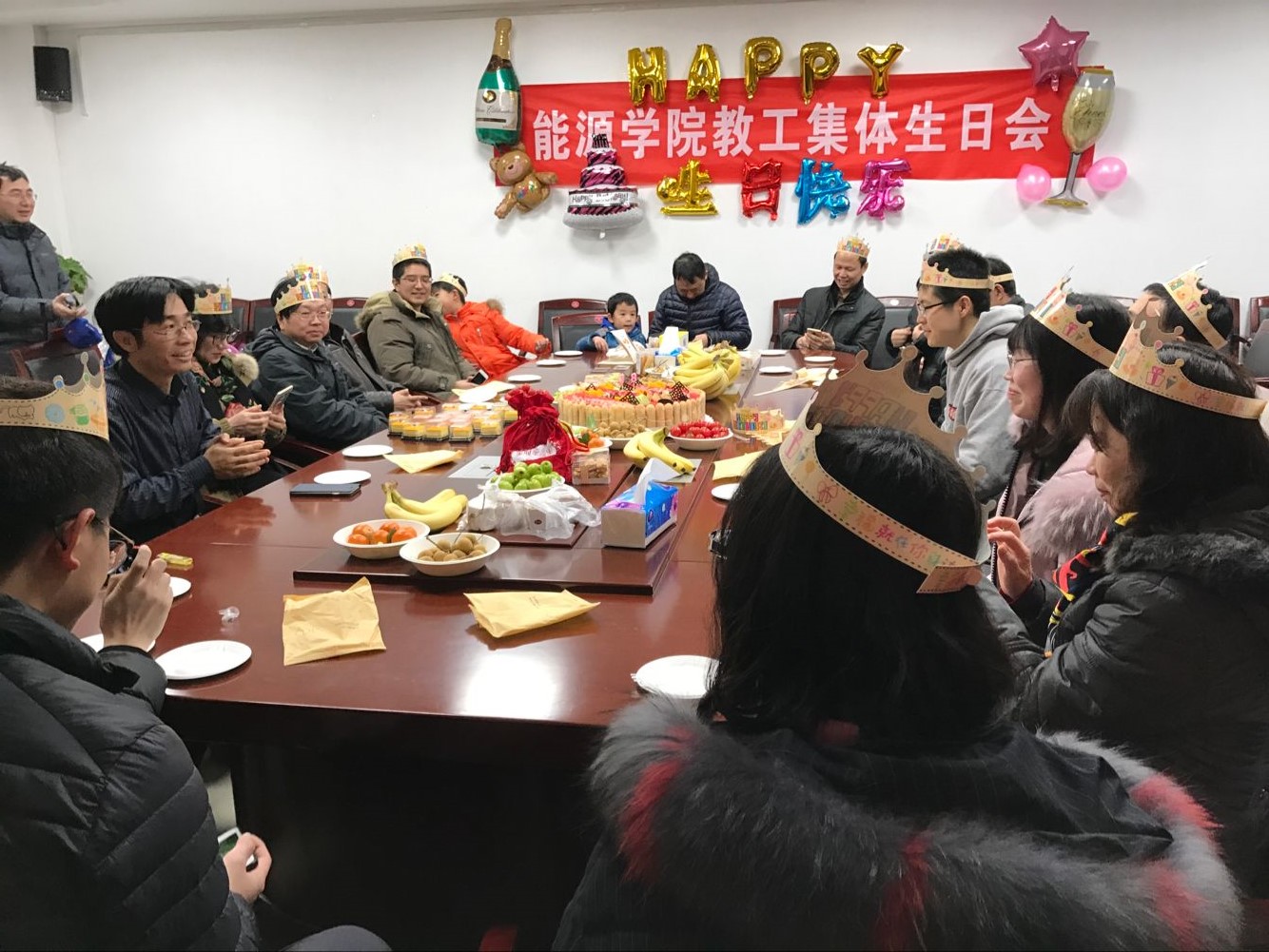 本站讯 (通讯员 吴辉)2018年1月30日上午11时,能源学院在动力楼201会议室为一月和二月生日的教师准备了一个盛大的集体生日会。