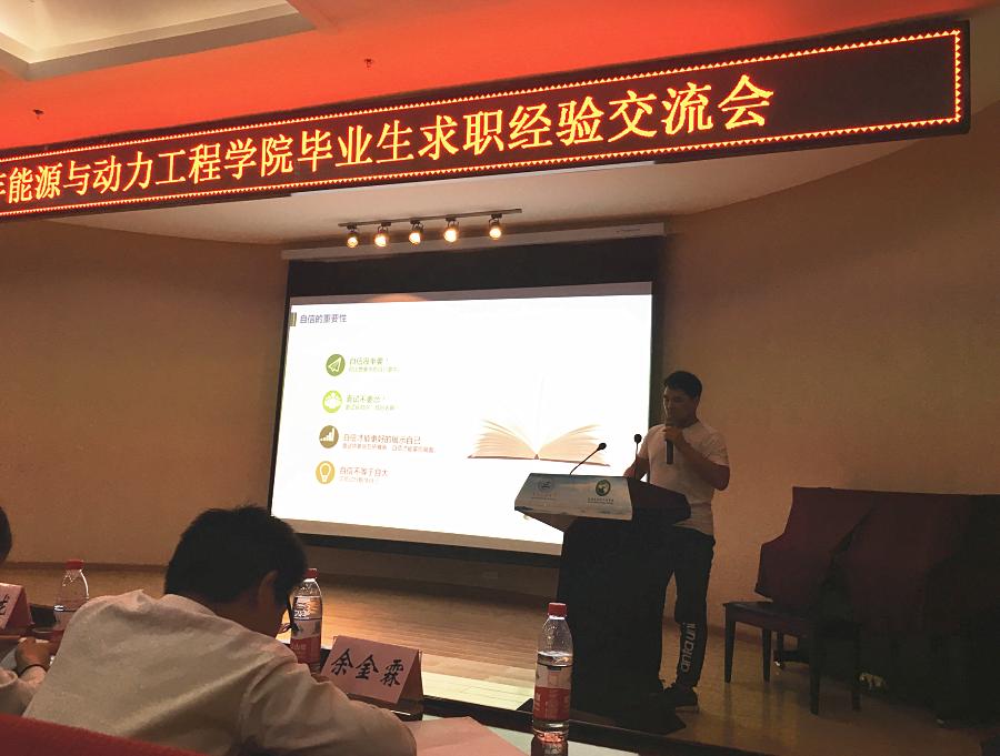 5月23日晚,能源学院学工组和院研究生会主办的求职经验交流会在动力楼402会议室顺利召开。能源学院已签约的优秀毕业生代表丁立志、郭俊哲、朱景龙、江代超、余金霖结合自身求职经验进行了分享。