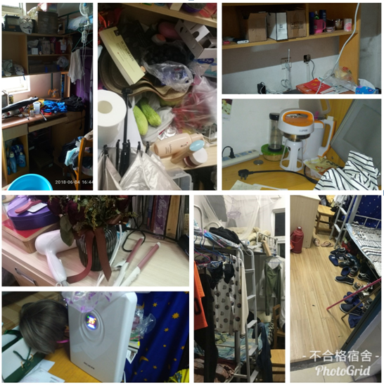 6月4日,学院研工组、研究生会、党员安全卫生岗、班级生活委员对全体硕士和博士研究生宿舍进行了安全消防和卫生检查。此次检查覆盖了能源学学研究生居住的所有宿舍:西一舍、西四舍、西五舍、西六舍、西七舍、西八舍、西九舍、西十一舍、西十二舍、西十三舍、西十四舍、西十五舍、西十六舍、西十七舍、教八舍、东一舍、博士公寓一栋至四栋以及紫菘二栋、五栋、六栋等楼栋。本次专项活动对宿舍插座使用、宿舍阳台堆积可燃杂物、违规电器使用等可能存在的安全隐患进行了仔细排查,对存在安全隐患、宿舍脏乱差的宿舍,公示如下: