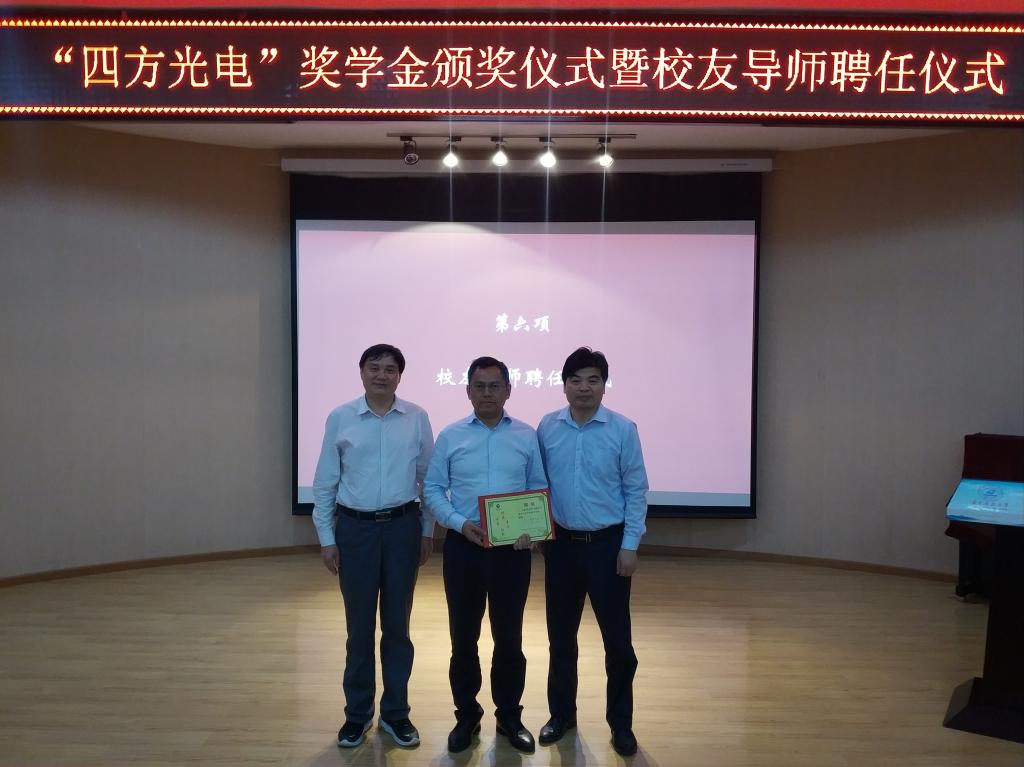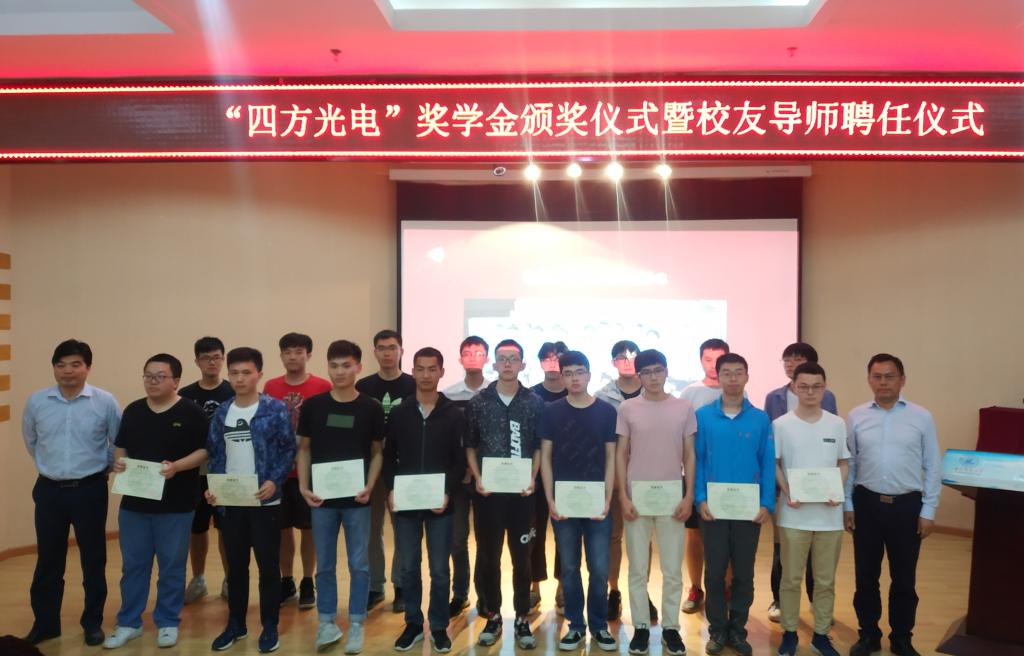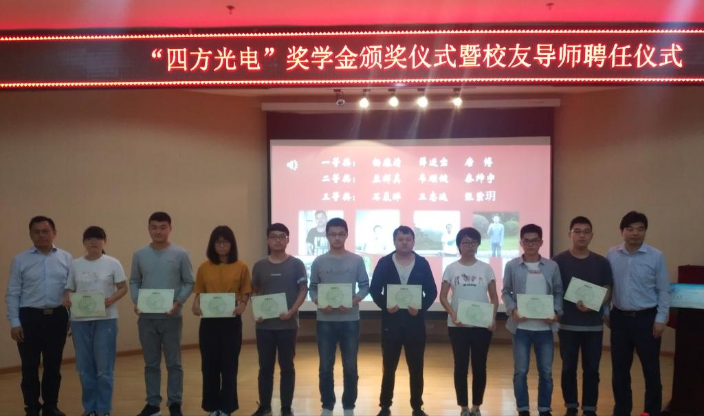 颁奖环节,由熊友辉先生、姚洪老师和冯晓东老师为“四方光电学业进步奖”获奖同学、“四方光电班级学风奖”获奖班级颁奖。