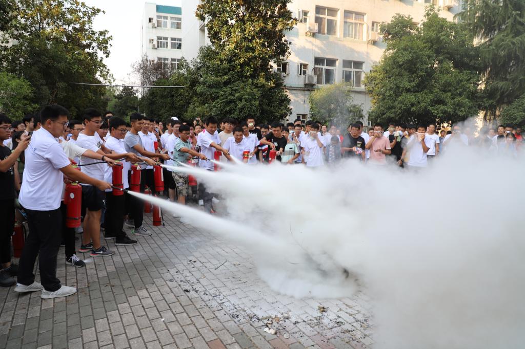 2019级全体新生参加了消防演习。此次消防演习得到保卫处、后勤集团物业总公司等单位的全程指导和支持。