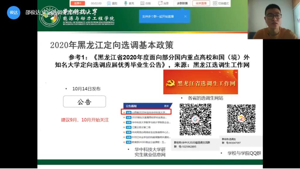 (通讯员 江伍凤)5月18日下午,能源学院2020年选调生交流会在线上顺利召开。本次交流会邀请到华中科技大学党委研究生工作部思想教育办公室老师郑名扬、能源学院2018届硕士毕业生申俊豪、2020届硕士毕业生邵俊达,旨在为同学们分享选调生政策、求职经验等,学院120余名研究生参加了本次交流会。