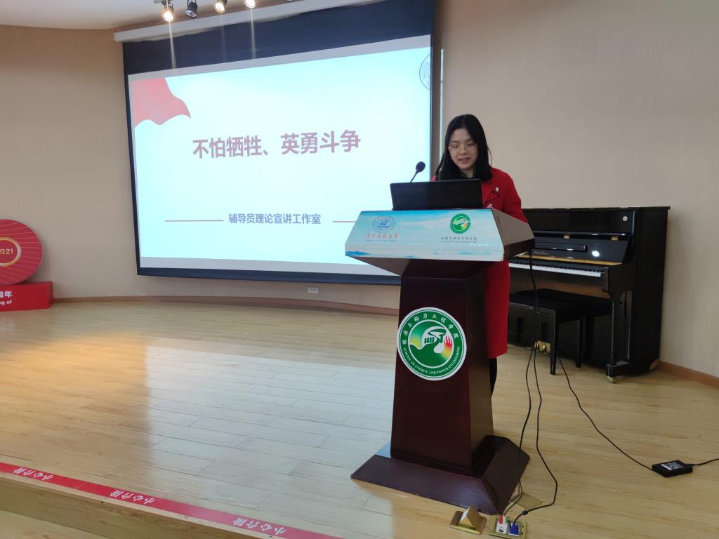 陈璞赟老师以“不怕牺牲、英勇斗争”为主题进行了宣讲,集中学习了“不怕牺牲、英勇斗争”在不同历史时期的不同表现,重点展示了“敢于斗争、敢于胜利的政治品格,不畏强敌、血战到底的英雄气概,牺牲小我、舍生取义的崇高追求”的精神内涵,
