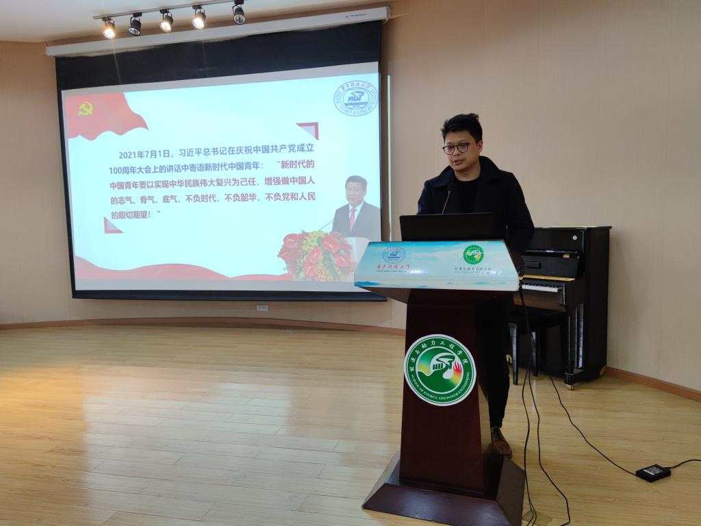 为加强yl23411永利集团学生骨干队伍建设,提升学生骨干的思想水平、政治觉悟、道德品质、文化素养和工作能力,12月12日上午,辅导员理论宣讲工作室杨柳、王佳恒、陈璞赟、靳丰富、王泽昀五位老师,为能源学院第十四期学生骨干培训班160余名学生骨干开展了“弘扬伟大建党精神,勇担当代青年使命”为主题的理论宣讲。
