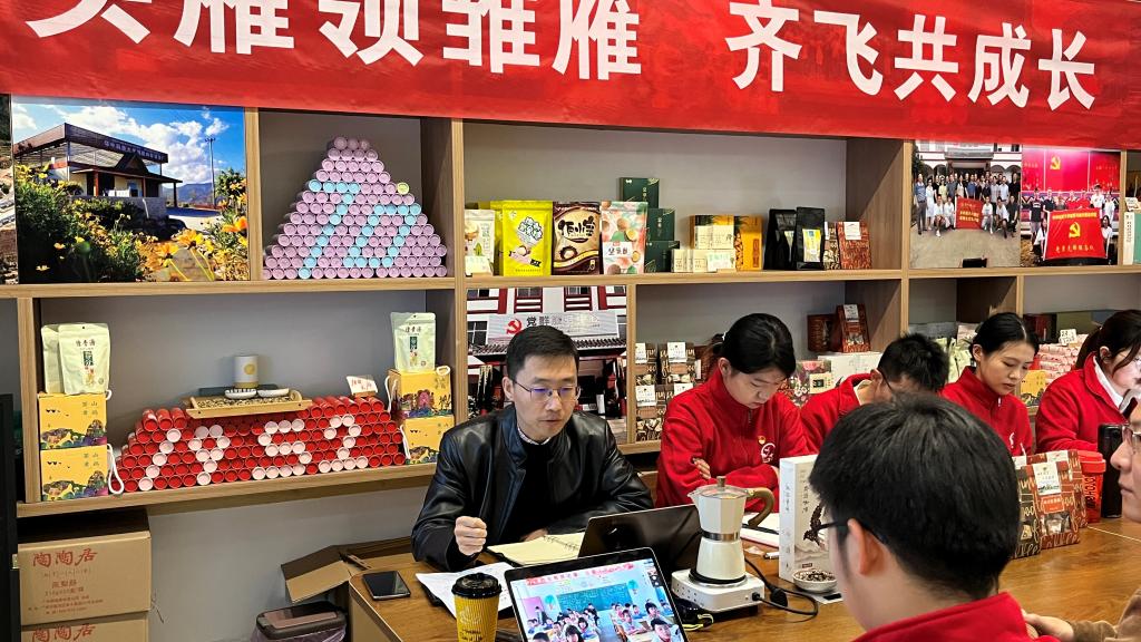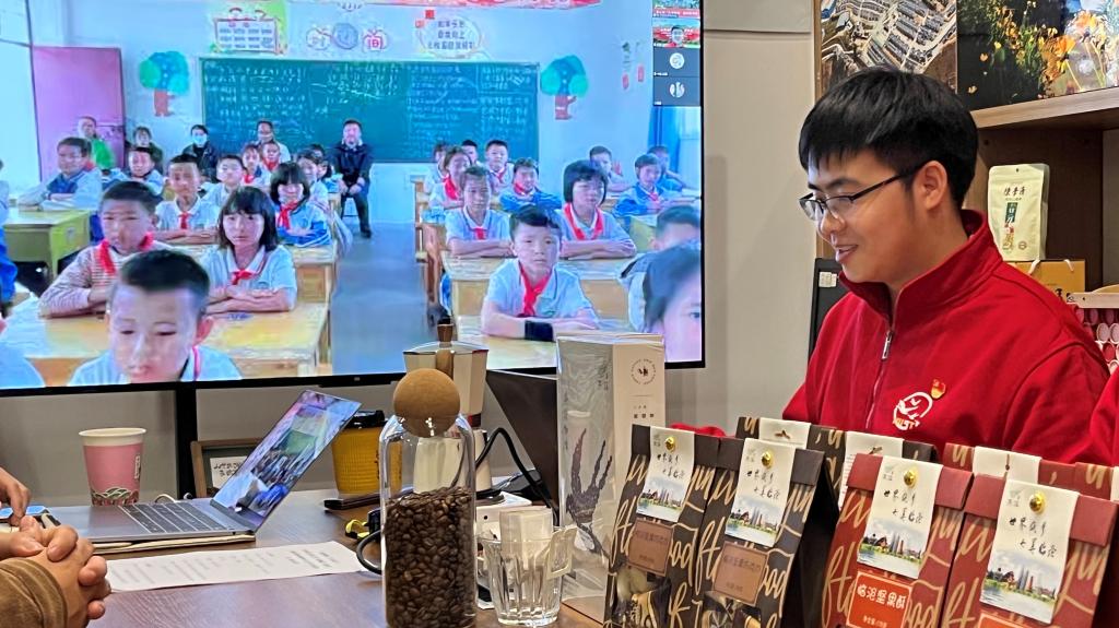 蚂蚁堆村和燕语茶业有限公司驻能咖空间教育基地负责人兼指导老师马永瑧带小朋友们云游能咖空间,系统介绍了能咖空间。能咖空间系华中科技大学对临沧市定点帮扶工作中结出的硕果,引入云南临沧本土咖啡、茶叶,服务华中大全校师生,宣传展示云南省临沧市临翔区蚂蚁堆村的建设新貌和优质产品,助力蚂蚁堆村乡村振兴。他表示未来将进一步深化产业扶贫,依托临沧特色资源,扎根华中大红色土壤,持续推进扶贫项目开展,延续华中大与临沧的深厚情谊。