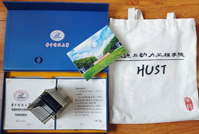 本次能源学院毕业纪念品以“蜕变”为主题,喻指学子求学路上理想信念的蜕变、知识能力的蜕变、人格担当的蜕变。纪念品包括新能源大楼3D贺卡、刻有姓名学号的戒指、华中大明信片以及文创帆布包。每份礼物都由学院精心准备和制作,耸立挺拔的新能源大楼模型,“愿你阅尽千山万水,走遍四海八荒,初心不改、青春不负!”的院长寄语,都承载着能源学院对莘莘学子的浓浓情意。奔流入海、踏梦归来,未来的路并非坦途,但相信能源学子定能在新时代的潮流中乘风破浪,在无愧国家、无愧时代、无愧人民的青春事业中砥砺奋进、久久为功!