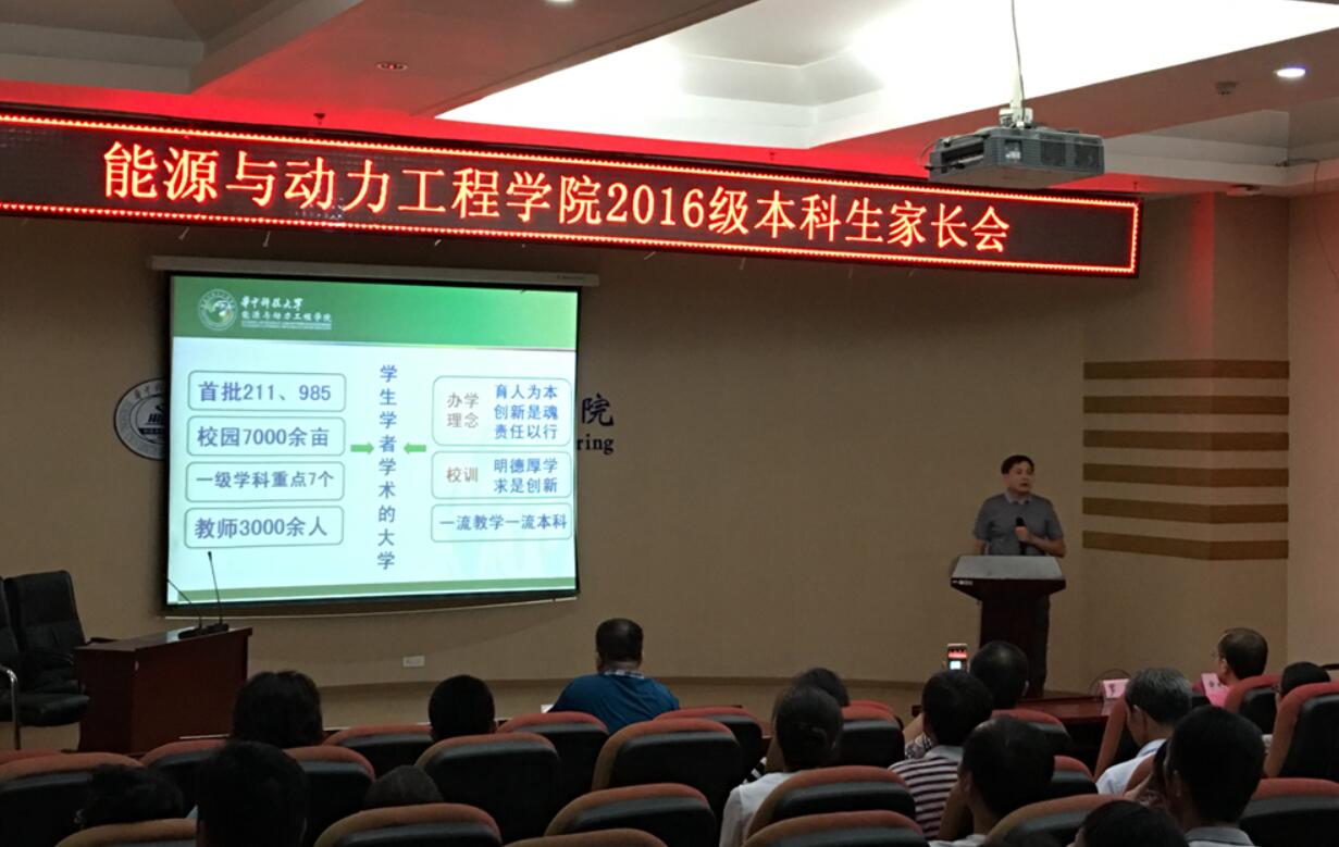 冯书记以两张照片为引子,分别谈到今天天高云淡的好天气和迎新现场忙碌的身影,以此对16级新生及家长的到来表示欢迎与感谢。“学生、学者、学术的大学”、“学在华中大”,冯书记以这两个标签为引对学校的概况进行了简单介绍。随后,通过对yl23411永利集团、科研平台等方面的介绍,使家长们对能源学院有深入的了解。冯书记还展示了学院近年来本科生的一系列相关数据,在助奖学金、科研项目、毕业去向等多个方面展现能源学院雄厚的教学资源和火热的就业形势。