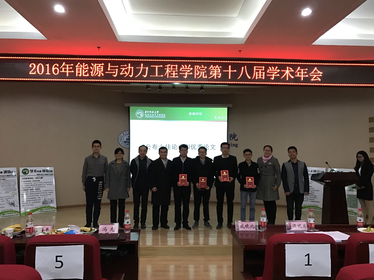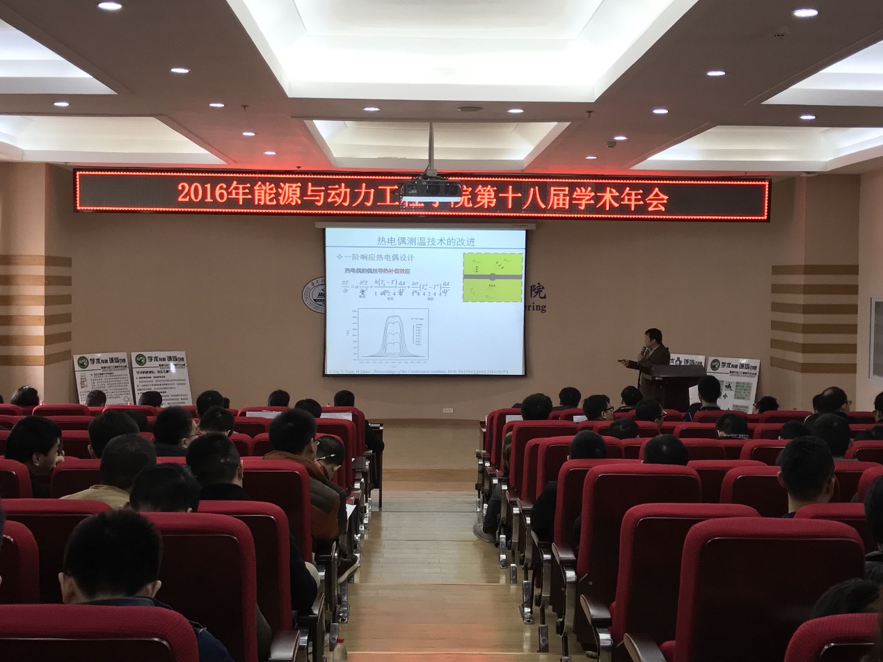 2016年12月3日星期六8点30能源学院十八届学术年会在动力楼402召开。本届学术年会面向14级研究生及其他同学征稿,于2016年10月1日开始征稿工作,并进行了投稿文章的博士初审及老师二审,最终遴选出二十篇论文进行现场答辩,年会现场评选出十佳论文及优秀论文。年会首先由受邀嘉宾进行学术报告,再由进入终审的研究生现场答辩,受邀嘉宾对答辩进行评分,活动持续一整天。老师和同学的热情参与、精彩的学术报告、深刻的学术交流给现场所有人带来一场学术盛宴,取得圆满成功。