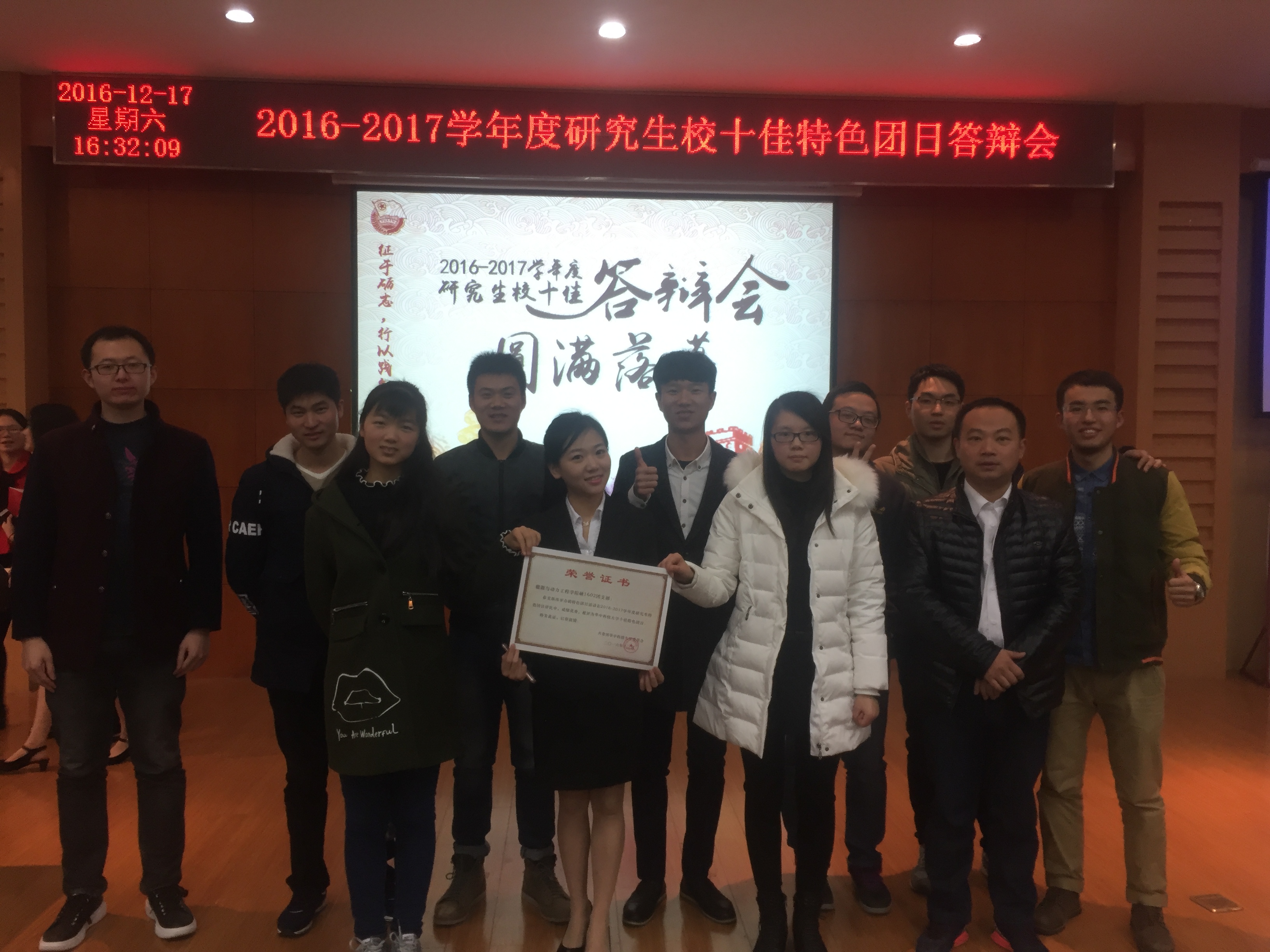 12月17日晚上,在2016-2017学年度研究生特色团日评比上,能源学院硕1602团支部被评为“华中科技大学十佳特色团日”。
