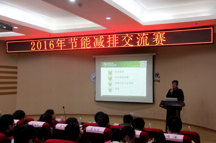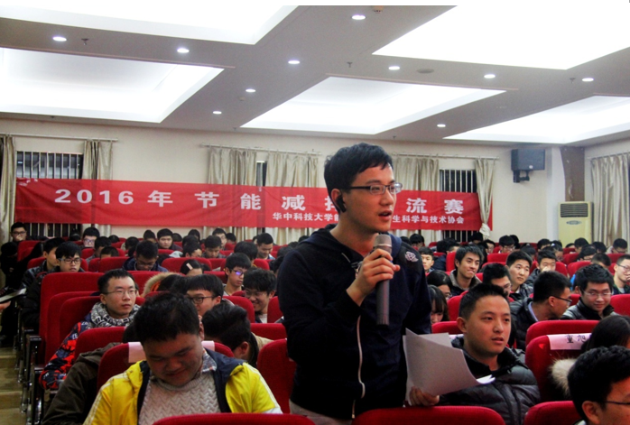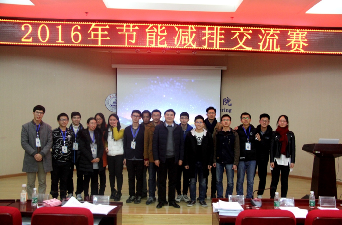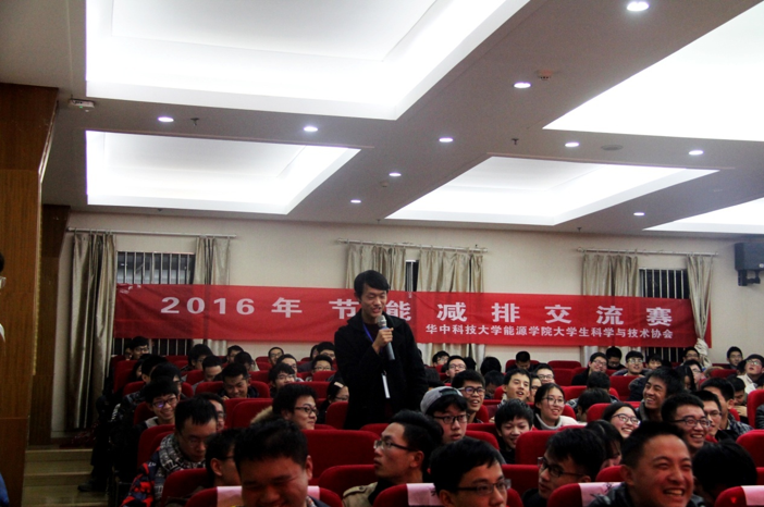 2016年12月23日晚7点,历时两个月的2016年节能减排交流赛决赛在动力楼402拉开帷幕。出席本次比赛的嘉宾和评委有:校团委副书记李嵩老师,华中科技大学国家大学科技园副总经理沈重耳老师,华中科技大学国家大学科技园刘勇老师,能源学院舒水明教授,能源学院党委副书记冯晓东老师,能源学院申利梅副教授,能源学院张师帅副教授,能源学院刘小伟副教授,能源学院分团委书记罗迪老师、科创辅导员周思立老师,以及由张旭然、吴至易、董绪然、袁旭东、冯浩、杨福5位同学组成的学生评委。