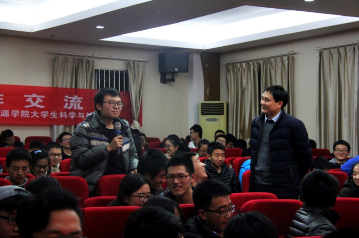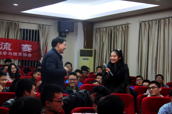 现场的气氛在大家的发言中逐渐轻松起来,来自能源学院1607班的李鑫坤同学主动发表感想,他说自己一开始不是特别想来观看比赛,但是来了之后得到很大的启发。在台上的答辩选手有自己熟知的学长学姐,但是今天他们都展现出了另外一面,激发了自己的科创热情,希望有一天可以像台上的选手一样,拥有属于自己的科创作品。
