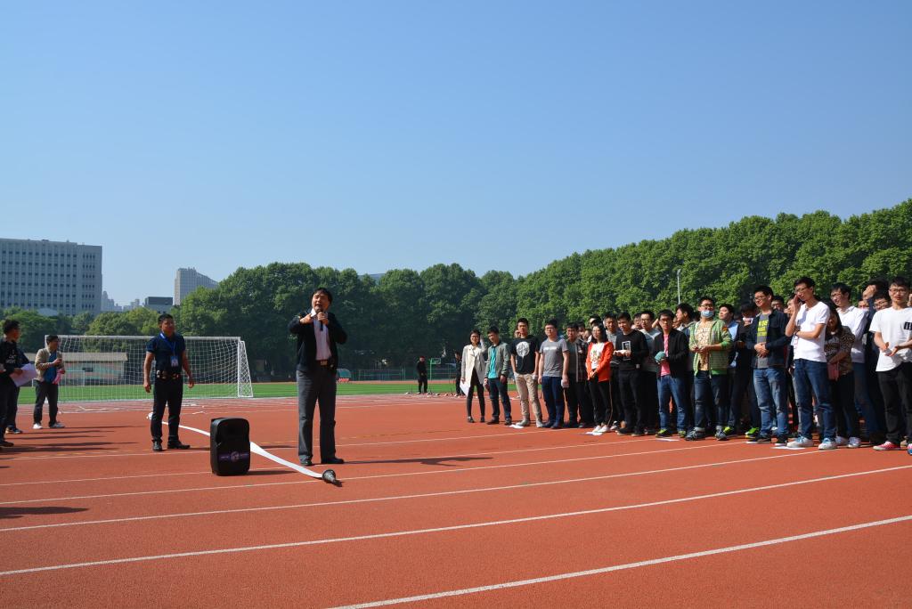 上午九点整,演习活动正式开始。首先由能源学院党委副书记、消防演习总指挥冯晓东老师向全体师生作演习前动员。冯书记为研究生们说明了本次活动的背景与意义。学生寝室人员集中,是我们学校重要的消防阵地,同时也是消防安全工作的重点和难点。同学们应认真学习消防安全知识,熟悉灭火器的使用原理,掌握基本的消防技能和逃生的技巧,在火灾发生时,切勿惊慌,沉着应对,做好及时报告和安全逃生工作,避免悲剧的出现。在讲话的最后,冯书记与在场同学进行了有趣的互动,同学们都非常期待这次活动的开展。