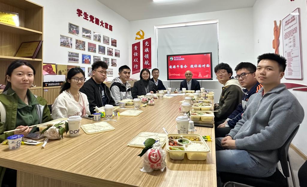 为进一步推动育人力量下沉社区,打造师生多元交流平台,学院于3月20日中午在紫菘6栋三楼东公用房举办首期“院领导午餐会”。能源学院院长罗小兵老师、党委副书记孙禄老师、本科23级辅导员郑妮婷等与来自各年级、专业的10名学生代表共进午餐,面对面畅谈学科发展与校园生活。