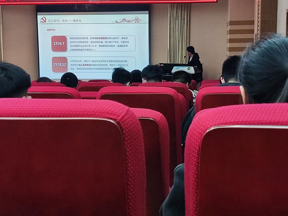 随后,毕树茂同志带领大家深入学习了华中科技大学的历史。他简要地介绍了华中科技大学的前身、组成以及与其他高校的学术渊源。然后借助校史馆的陈列内容,向我们介绍了我校过去取得的一些成就。最后,毕树茂同志带我们回顾了在2020年抗击疫情过程中,我校为全国疫情的防控做出的杰出贡献,并勉励各位党员在最新的疫情防控形势下居安思危,常怀远虑,配合好学校乃至政府的工作。