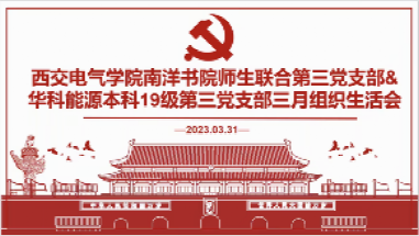 3月31日晚,华中科技大学能源学院本科19级第三党支部和西交电气学院南洋书院师生联合第三党支部在线上联合开展三月组织生活会,学习两会精神,分享党建经验。华中科技大学能源本科19级第三党支部朱琳和西交电气学院南洋书院师生联合第三党支部张佳薇共同主持会议。