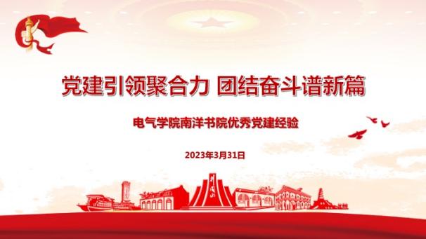 随后,西交电气学院南洋书院张佳薇同志从管理及组织建设、特色活动、党员“传帮带”等方面分享优秀党建经验。西交电气学院南洋书院采取“一讲二评三分享”组织架构,全面落实制度建设。同时,该支部多次开展结对共建主题党日,通过与研究生党支部以及其他党团支部共建,交流学习支部建设典型做法;围绕重要时间节点举办形式多样的支部活动,如共看开幕式、原原本本读报告、支部书记讲党课、二十大有奖知识竞答等,兴起学习宣传贯彻党的二十大精神热潮。