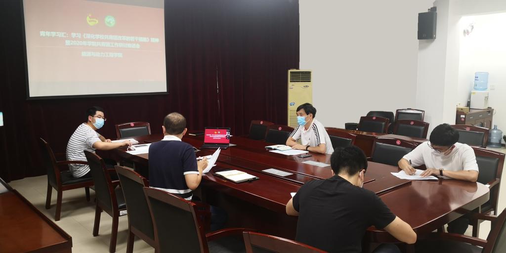 (通讯员 李锡)6月23日,能源学院组织青年学习汇活动,专题学习《深化学校共青团改革的若干措施》(以下简称《若干措施》),并召开2020年学院共青团工作研讨推进会。本次会议通过线上线下相结合的方式召开。学院党委副书记冯晓东,学院共青团主要干部及部分学工组辅导员参加会议。