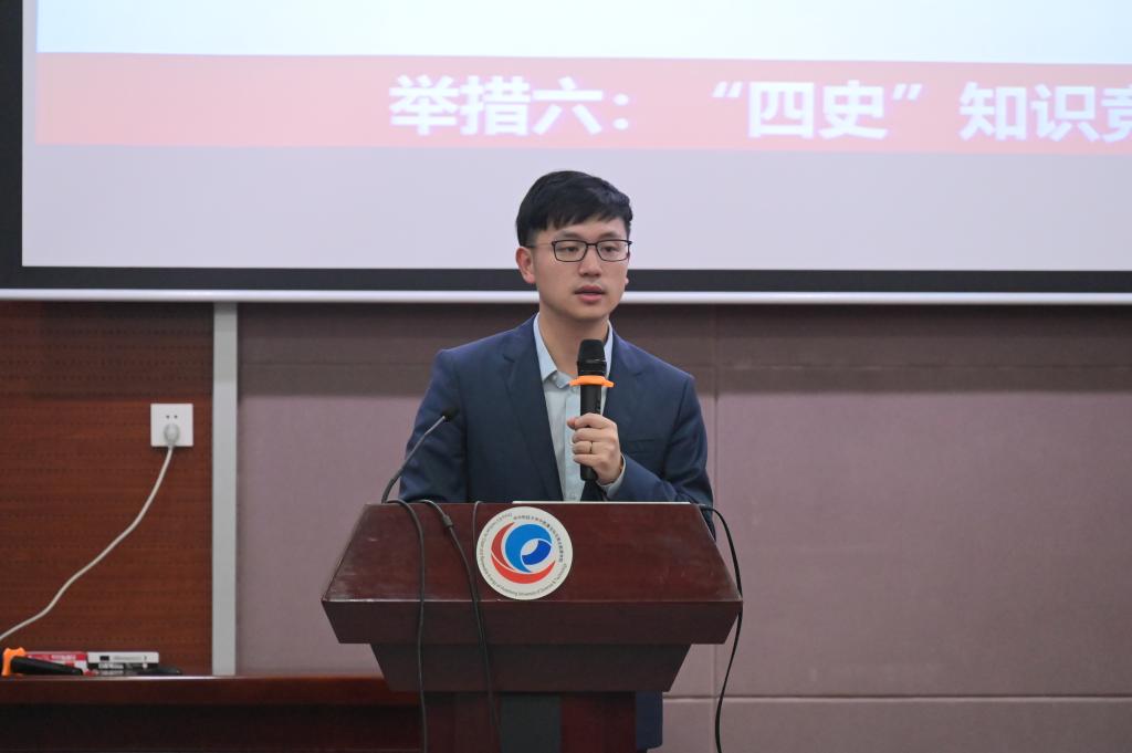 大会首先进行了能源学院“四史”学习活动启动仪式,罗迪老师首先强调了学习党史、新中国史、改革开放史、社会主义发展史的重要意义,介绍了学院将通过组织“四史”专题学习、“四史”学习专题思政课、“四史”学习党课团课、“四史”学习研讨、“四史”实践教育和“四史”知识竞赛等方式落实“四史”学习。