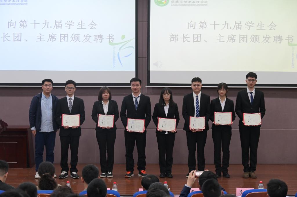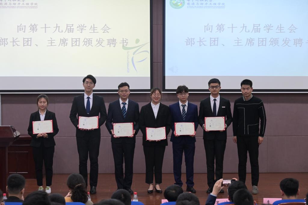 孙伟老师、李锡老师分别向院19届学生会主席团、部长团颁发聘书。