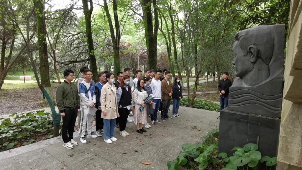 许柏蓉同学带领来到胡吉伟雕像前,缅怀英雄事迹,传承青年精神,蓉组织大家进行了祭扫送花。胡吉伟学长是华中科技大学经济学院2000级学生,于2001年在家乡勇救落水小学生而不幸牺牲。胡吉伟学长的事迹让同学们深受感动,纷纷表示这种舍己为人、英勇献身的牺牲精神值得每一位青年团员们的学习。许柏蓉同学结合习近平总书记视察清华大学重要讲话精神,呼吁同学们将胡吉伟的精神传承下去,做到爱国爱民、锤炼品德、勇于创新、实学实干,为实现中华民族伟大复兴奉献自我、不懈奋斗。