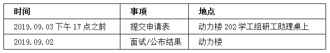现将能源学院2019-2020年度助管岗位三助聘任时间安排以及计划列示如下,请大家仔细阅读,并根据实际情况提交《华中科技大学研究生兼任助理工作申请表》,于9月3日下午17点之前交至学工组李智辅导员处。