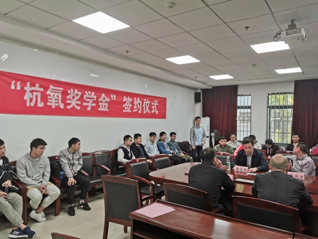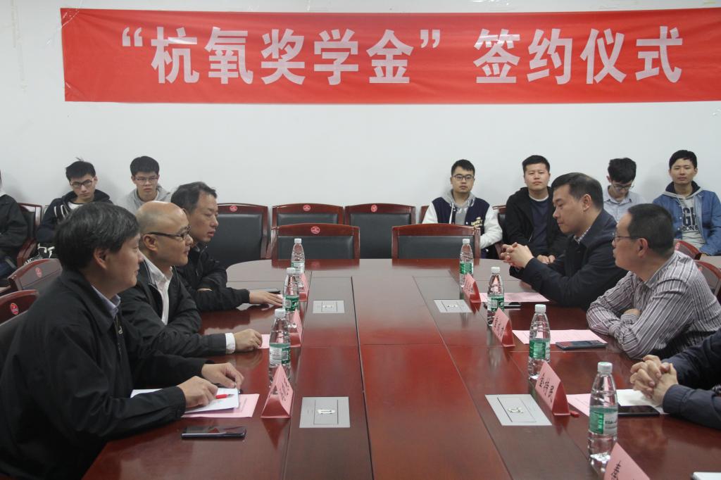 2019年10月29日上午,能源学院“杭氧奖学金”签约仪式在动力楼201会议室举行,杭州杭氧股份有限公司捐赠50万元,支持能源学院进行人才培养。杭州杭氧股份有限公司党委副书记、纪委书记章成力先生,人力资源部部长金持民先生,政工部部长詹学华先生,杭氧石化工程公司总工程师秦燕女士,能源学院院长罗小兵老师,党委副书记冯晓东老师,工程热物理系副主任杨昆老师出席本次颁奖仪式。