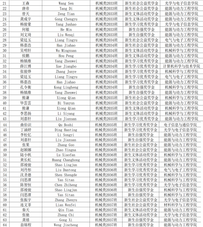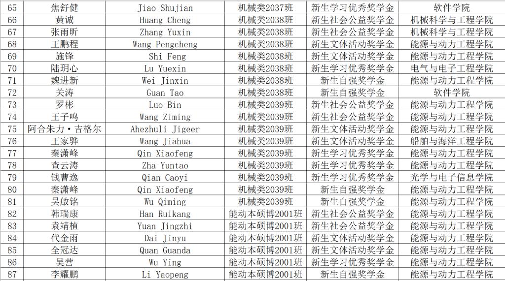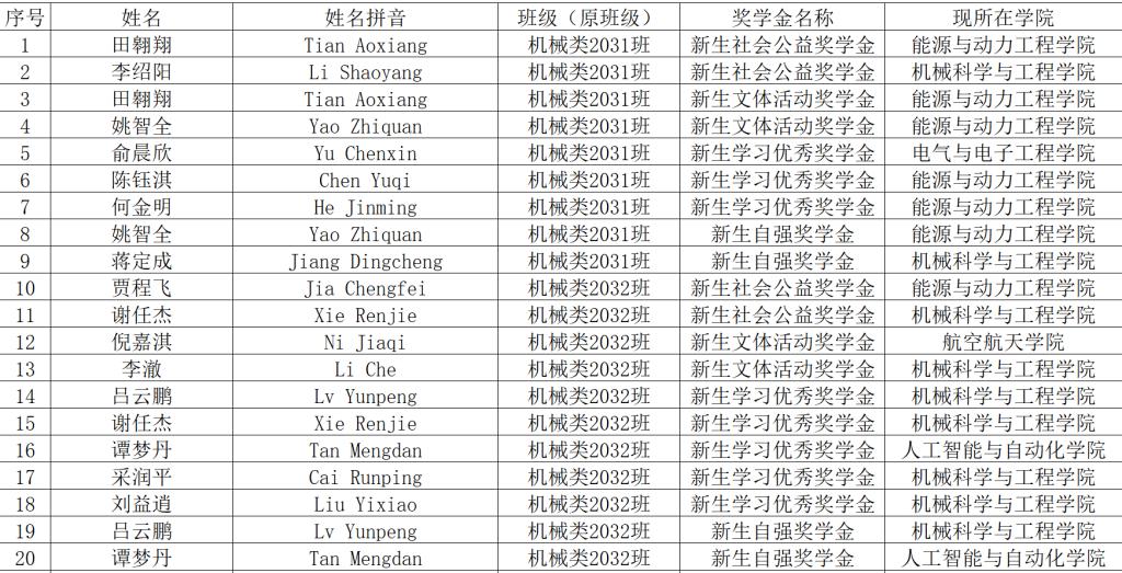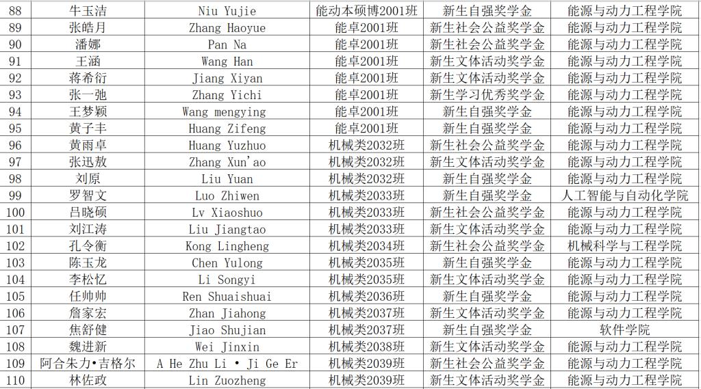 为奖励同学们的优秀表现,能源学院本科2020级于2021年3月开展了新生奖学金评定工作。经同学自主申请、班级同学民主考评,以及能源学院本科20级奖学金评定委员会评审,确定了2020级新生奖学金的获奖同学名单。本着公正公开的原则,现将获奖名单公示如下:
