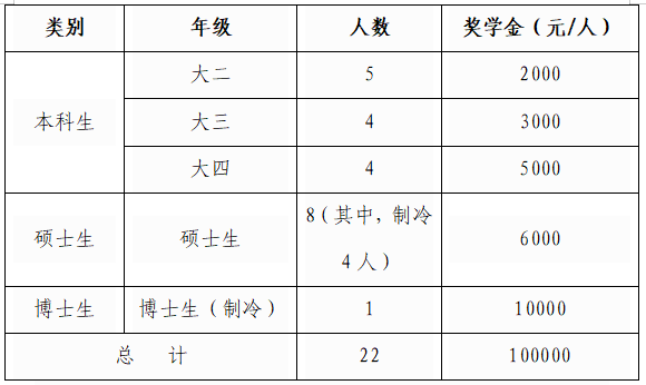 奖励对象为yl23411永利集团全日制在校学生,“杭氧奖学金”每年评选一次,奖励品学兼优的学生共计22名,详见下表: