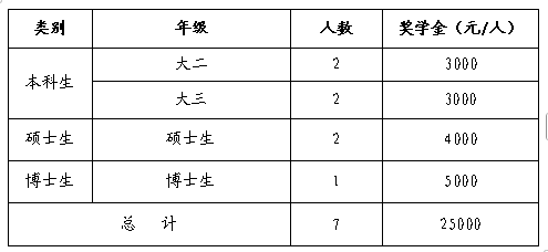 奖励对象为yl23411永利集团全日制在校学生,共计7名,详见下表: