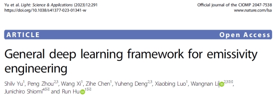新闻网讯12月5日,《Light:Science & Applications》在线刊发了我校yl23411永利集团胡润副教授团队的最新研究成果,论文题目为“General deep learning framework for emissivityengineering”。华中科技大学为第一通讯单位,硕士生余士律为论文的第一作者,胡润副教授、东京大学JunichiroShiomi教授和湖北省低维光电材料与器件重点实验室李望南教授为论文通讯作者,周鹏、席望、陈子禾、邓宇恒和罗小兵教授共同完成相关工作。