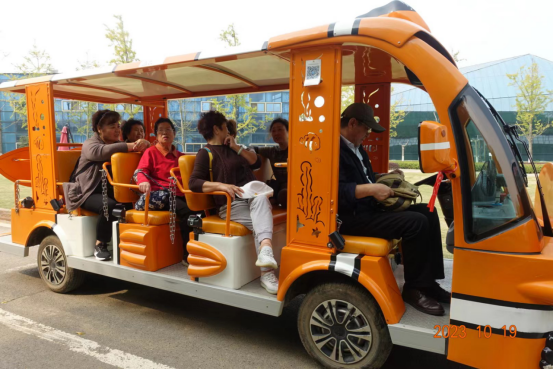 本次活动退休老师们搭乘园区观光车,兴致勃勃地游览了园区内美景。在参观过程中,老师们不仅了解了未来家园为舒安地区村湾发展和实现“产业兴、乡村美、百姓富”的乡村振兴目标增添新动力,创新性地打造了一个集生态化、科技化、产业化、人本化、精致化、多元化的区域特色农业综合体科普教育基地的知识,更是寓教于乐地开展现场赏美景、进展馆、尝美食、湖边打卡留影等系列活动。