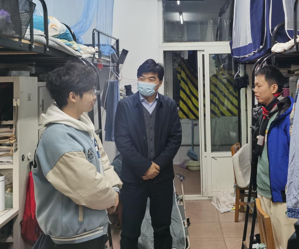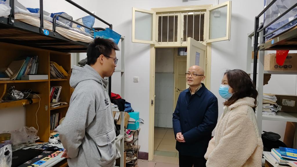能源学院党委书记姚洪、院长罗小兵、副院长成晓北、副书记孙禄走访本科生宿舍,与学生交流谈心,深入了解学生的学习情况,关心学生的生活状况,提醒学生遵守学校疫情防控有关要求,合理有序的安排好自己的学习计划。