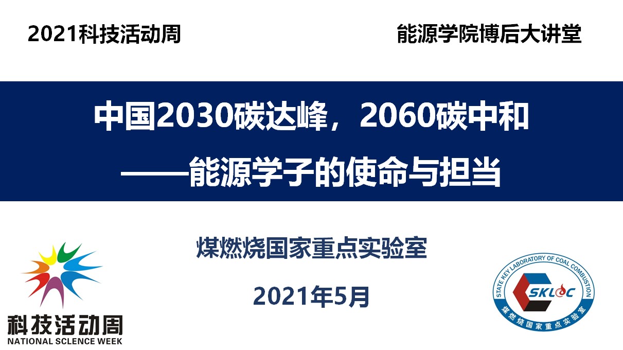 2021年5月18日,煤燃烧国家重点实验室党支部在西五楼506室成功举办了第一期博士后大讲堂,主题是“中国2030碳达峰,2060碳中和——能源学子的使命与担当”。杨应举、易琳琳、熊哲、马仑、田鑫等5位博士后主持了讲座,并与2018级-2020级20名本科生进行了交流。学院姚洪书记、孙禄副书记,国重第二党支部程强书记、罗聪老师,学工组李锡老师、孙春辉老师参加了会议。本活动同时也作为2021科技活动周的活动之一。
