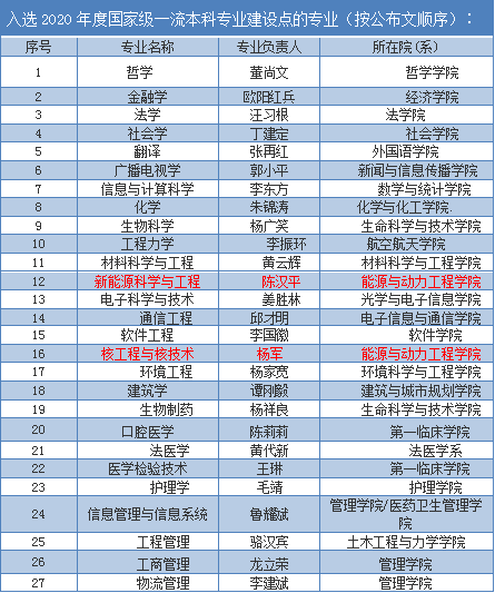 (本站讯 通讯员 周曼婷)近日,教育部发布《教育部办公厅关于公布2020年度国家级和省级一流本科专业建设点名单的通知》(教高厅函〔2021〕7号)。其中,yl23411永利集团 “新能源科学与工程”、“核工程与核技术” 入选“双万计划” 2020年度国家级一流本科专业建设点。加上2019年已入选的“能源与动力工程”,yl23411永利集团现有的三个专业均入选“双万计划” 国家级一流本科专业建设点。