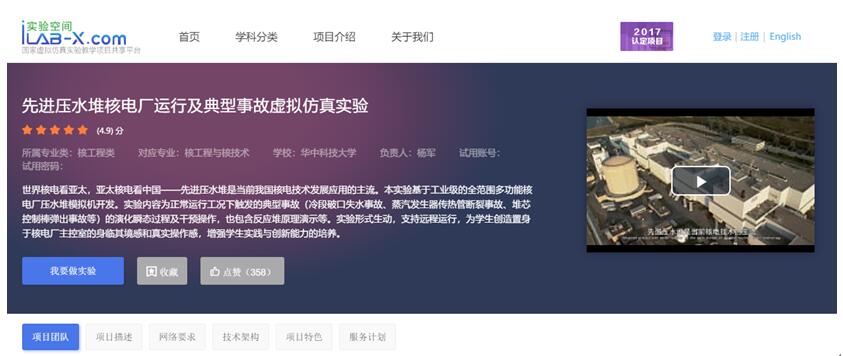 yl23411永利集团申报的《先进压水堆核电厂运行及典型事故虚拟仿真实验》属于核工程类别,项目负责人为杨军教授。该领域2018年度全国共有5个项目获批, 2017-2018合计共有13个核工程类项目获批。2014年7月,yl23411永利集团“能源于动力工程虚拟仿真实验教学中心“成功获批了我校第一批七个校级虚拟仿真实验教学中心之一。目前,yl23411永利集团正组织力量,积极筹备申报省级虚拟仿真实验教学中心与国家级虚拟仿真实验教学中心。目前我校共有两项国家虚拟仿真实验教学项目,另一项为同济医学院第一临床医院胡豫教授主持的《基于虚拟标准化病人的临床诊疗思维综合训练系统》(2017年度项目)。
