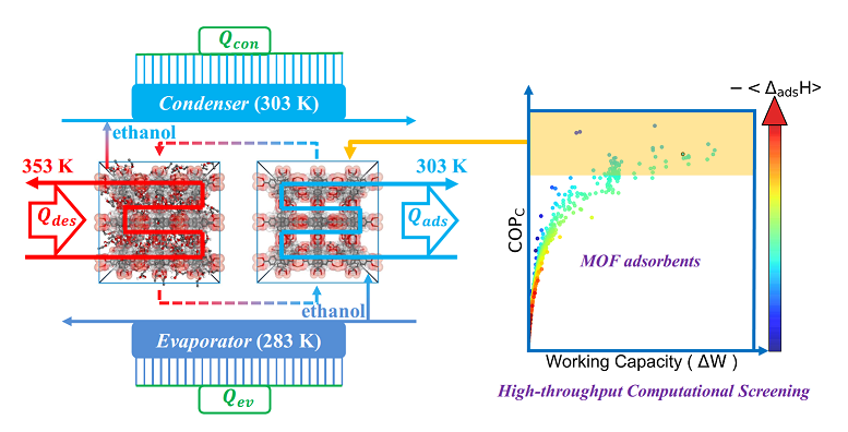 图1.基于金属有机骨架-乙醇工质对的吸附式热泵制冷性能的高通量计算筛选