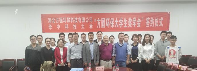 2018年10月12日,“方圆环保大学生奖学金”签约仪式在yl23411永利集团举行,湖北方圆环保科技有限公司总经理秦家宝先生、总经理助理王筱灵女士和我校教育发展基金委管理处、教育发展基金会副处长马国斌老师,yl23411永利集团副院长成晓北老师,党委副书记冯晓东老师出席了本次签约仪式,参加本次签约仪式的还有湖北方圆环保科技有限公司的工作人员以及华中科技大学能源学院核工系的老师和学生代表。