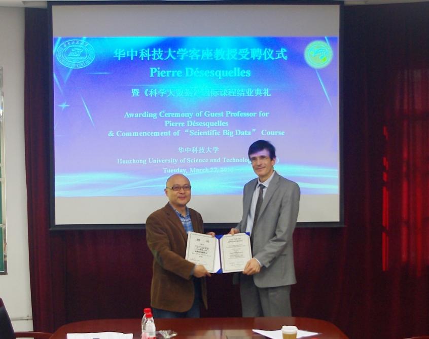 本站讯(通讯员何川)2018年3月27日下午,南巴黎大学(原巴黎第十一大学)特级正教授Pierre Désesquelles受聘为yl23411永利集团客座教授,受聘仪式暨《科学大数据》国际课程结课典礼在能源学院动力楼201会议室举行。yl23411永利集团院长罗小兵教授向Pierre Désesquelles教授颁发了聘书,我校国际交流处副处长何刚、能源学院核工系主任杨军教授、徐乐瑾副教授、邓程程、周夏峰等老师出席了受聘仪式。