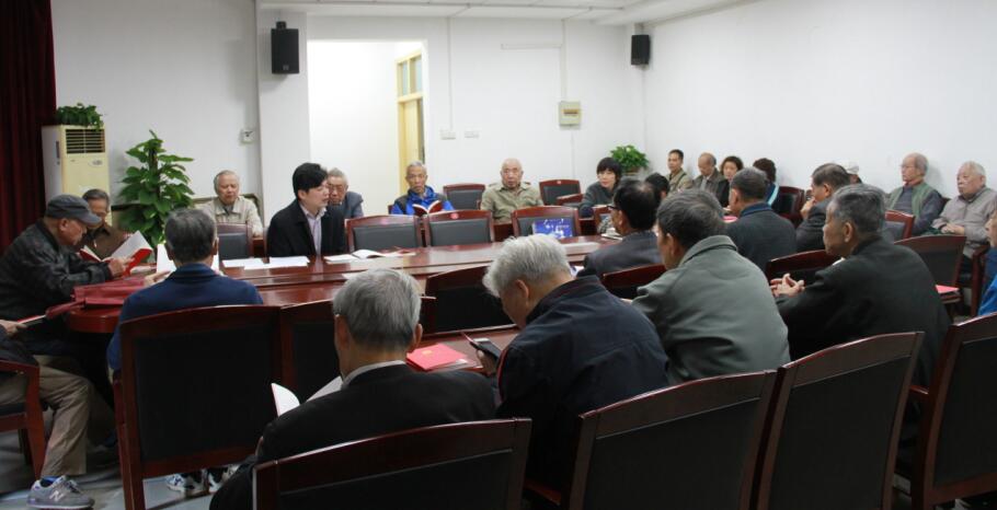 本站讯 11月9日下午,能源学院离退休党支部40多名党员在动力楼201会议室召开支部会议,邀请学院党委书记姚洪传达了十九大报告主要内容,学习十九大精神。离退休党支部书记邹文康主持了会议。