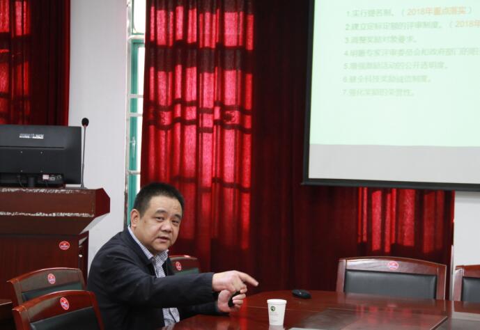 马荣主任首先介绍了2018年国家科技奖励改革的指导思想和基本原则,详细介绍了国家科技奖励的工作流程、改革举措、提名要求、提名书变化内容、时间安排、需要重点关注的事项,结合十九大的科技创新精神,对比往年申报国家科技奖的大量案例对改革举措逐条详细作了讲解,希望yl23411永利集团积极参与国家科技奖提名、早作准备、按新方案准备。