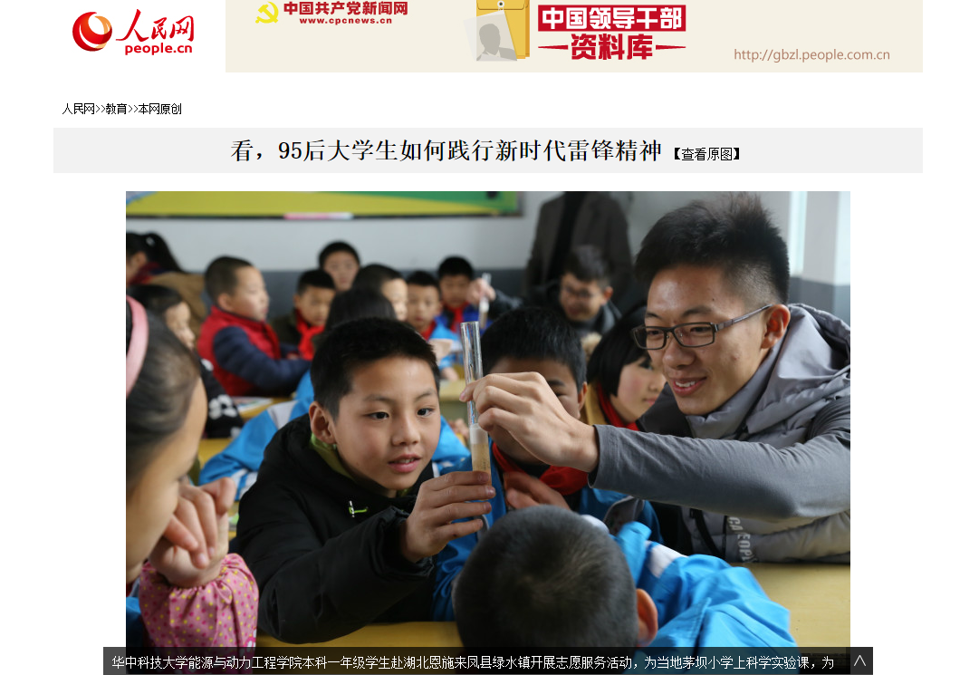 今年3月5日是第18个“中国青年志愿者服务日”,也是第54个“学雷锋纪念日”。人民网以《看,95后大学生如何践行新时代雷锋精神》为题报道了yl23411永利集团本科2016级学生赴湖北恩施来凤县绿水镇开展的志愿服务活动。