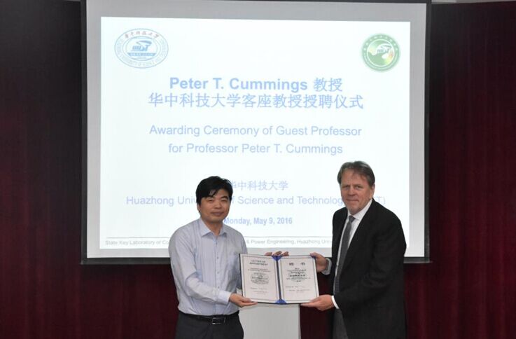 本站讯(通讯员 冯光)2016年5月9日上午,美国范德堡大学化学工程系Peter T. Cummings教授的客座教授受聘仪式在能源学院动力楼201会议室隆重举行,yl23411永利集团院长、煤燃烧国家重点实验室主任姚洪教授向Cummings教授颁发聘书,yl23411永利集团副院长罗小兵教授、副院长方海生教授以及冯光教授、李松副教授出席了受聘仪式。