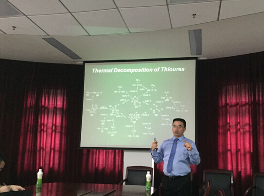 最后,结合同学们的工科背景,王泽容教授介绍到反应生成物4-Arylquinazolines的派生物是一种抗癌药物的重要成分,同时其派生物在石油的冶炼中具有很好的脱硫效果。